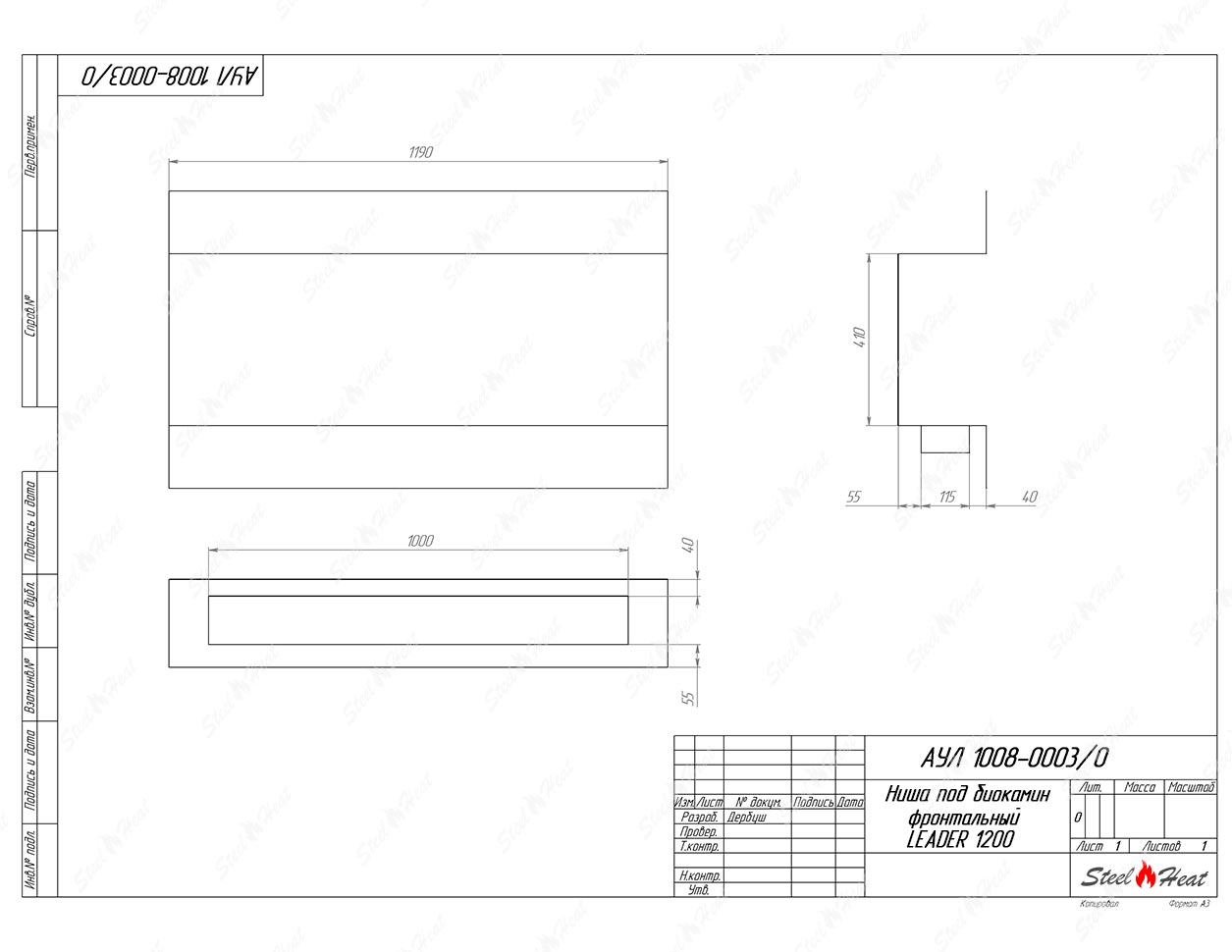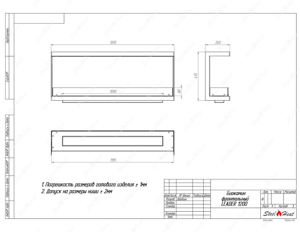 Встраиваемый Биокамин фронтальный SteelHeat Leader 1200предназначен для встраивания в глухие ниши из гипсокартона, кирпича, пеноблоков, бетона.