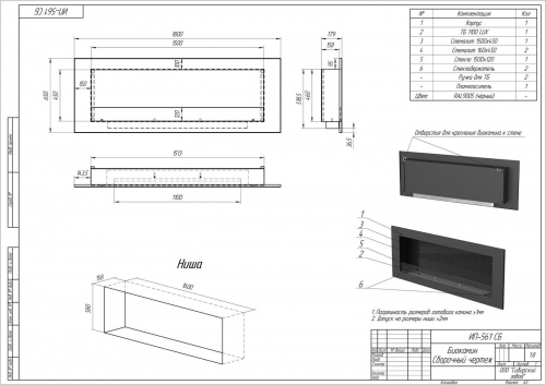Встраиваемый биокамин / очаг Mercury 1800 BLACK (SappFire)