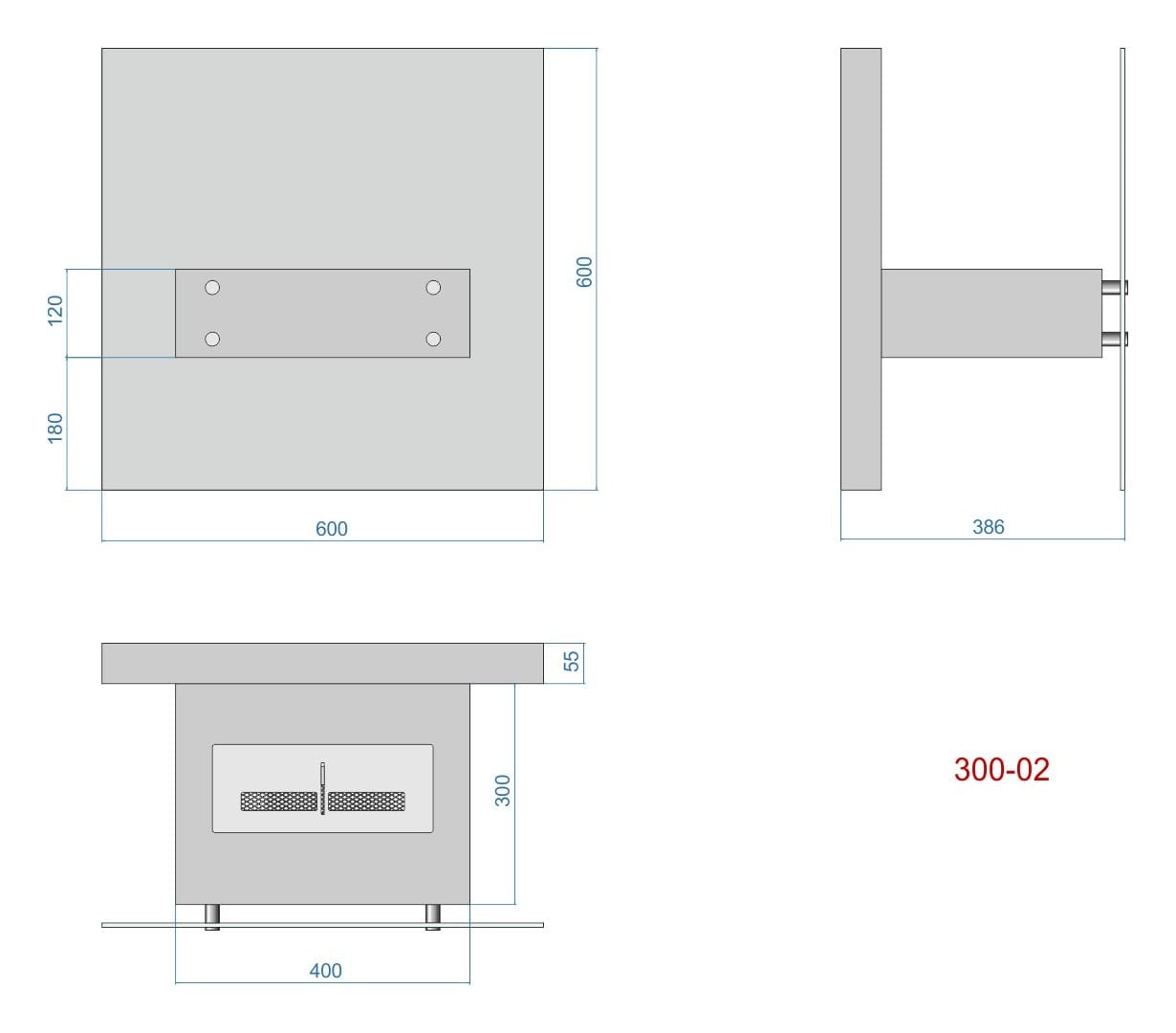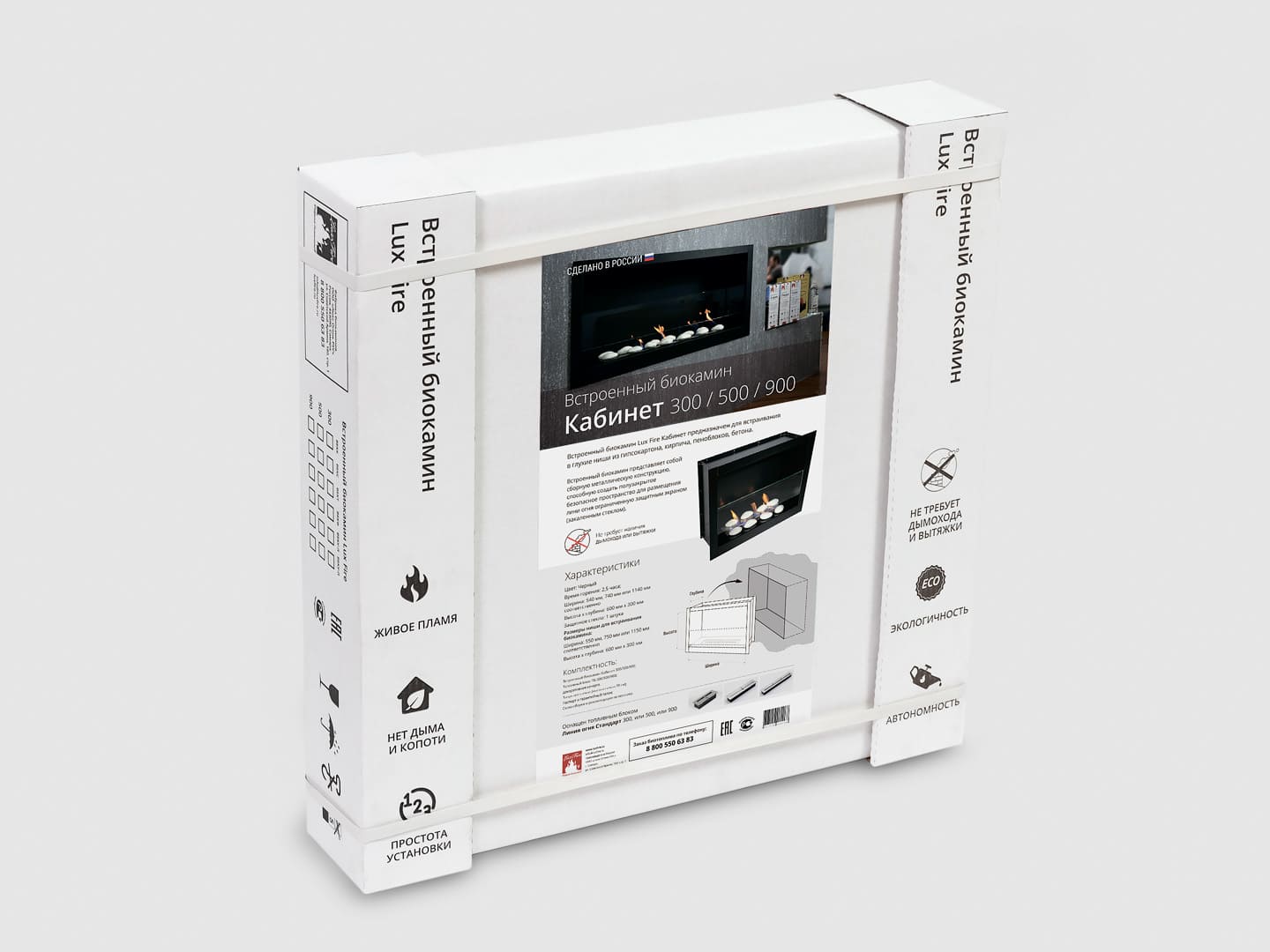 Биокамин оснащен качественным топливным блоком Lux Fire 300 М и закрепленным на 4 дистанционных держателях защитным стеклом.
