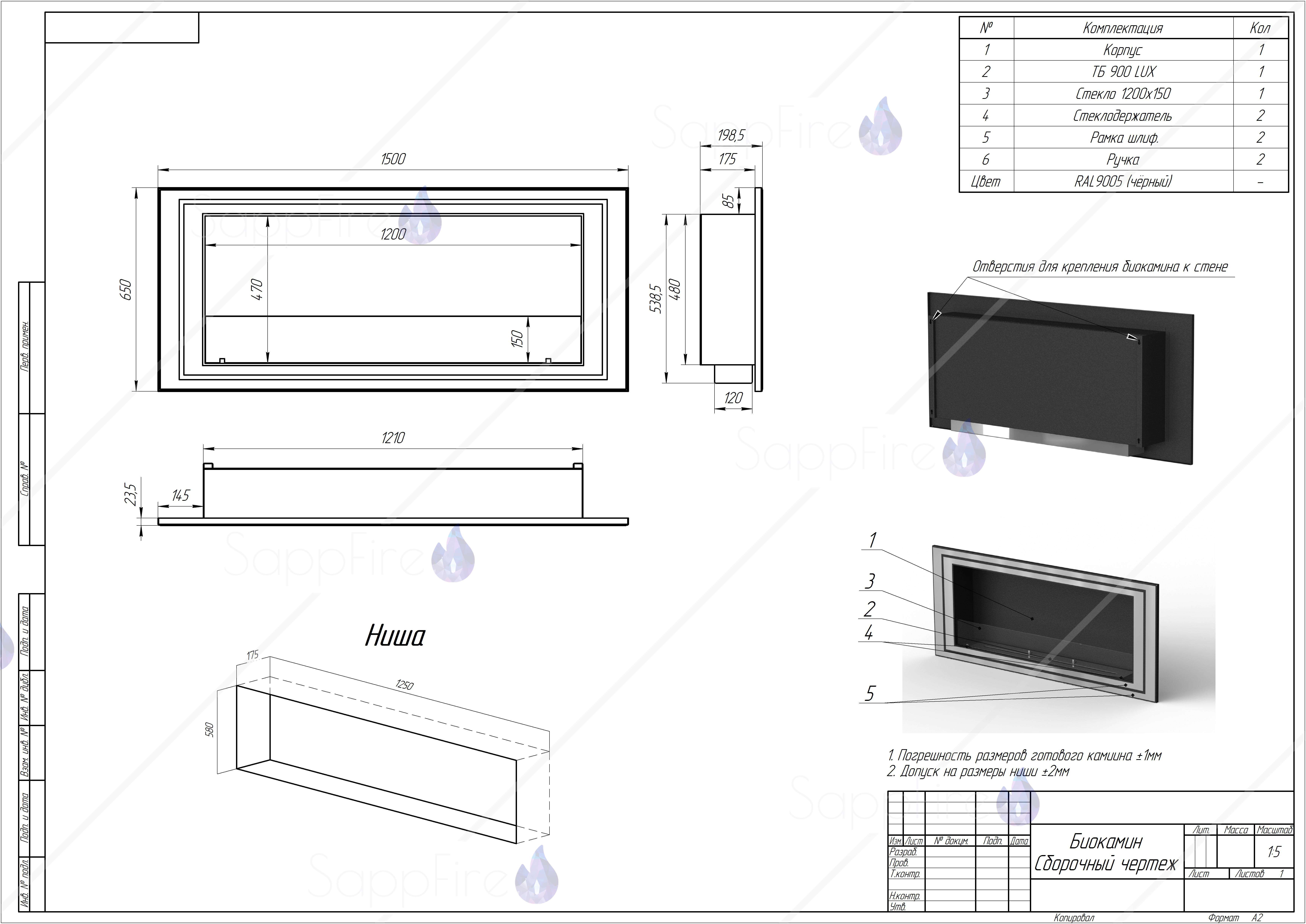 Биокамин Saturn 1500 (SappFire)
