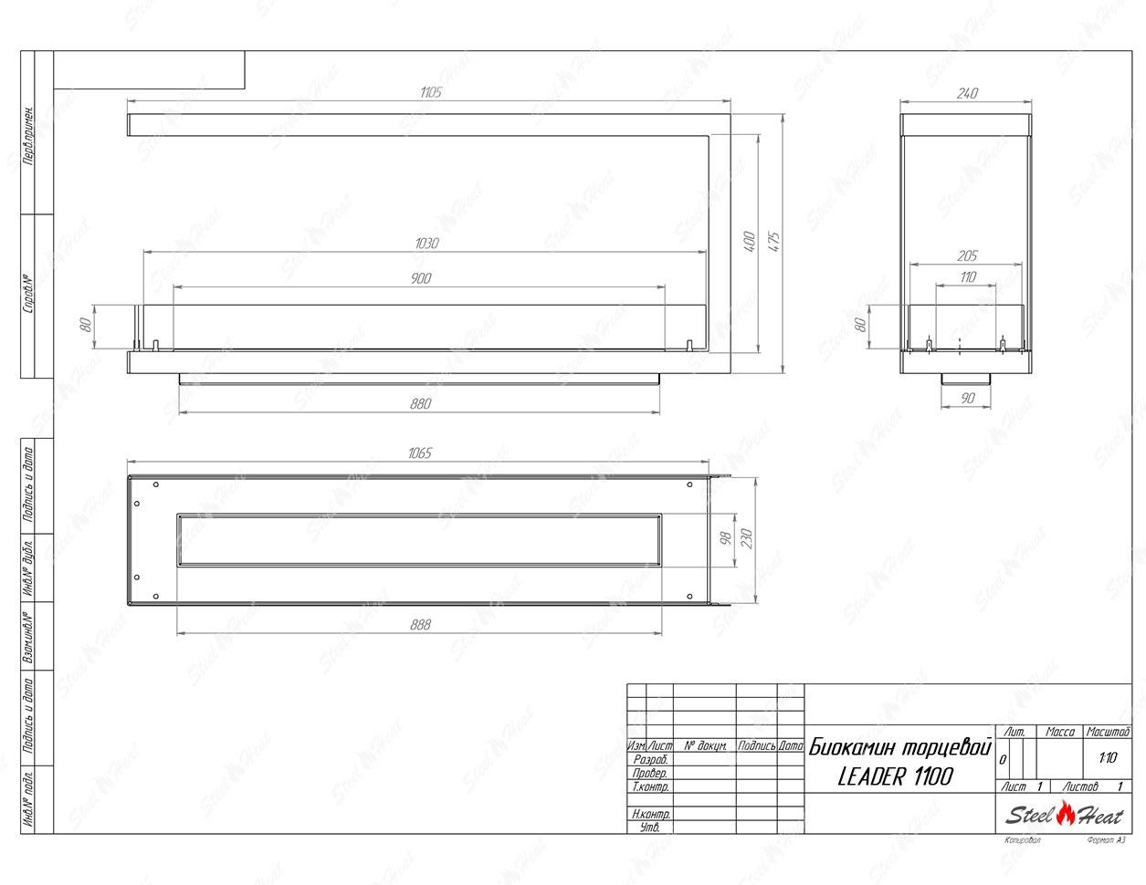 Биокамин SteelHeat FRONT 1100 - Характеристики