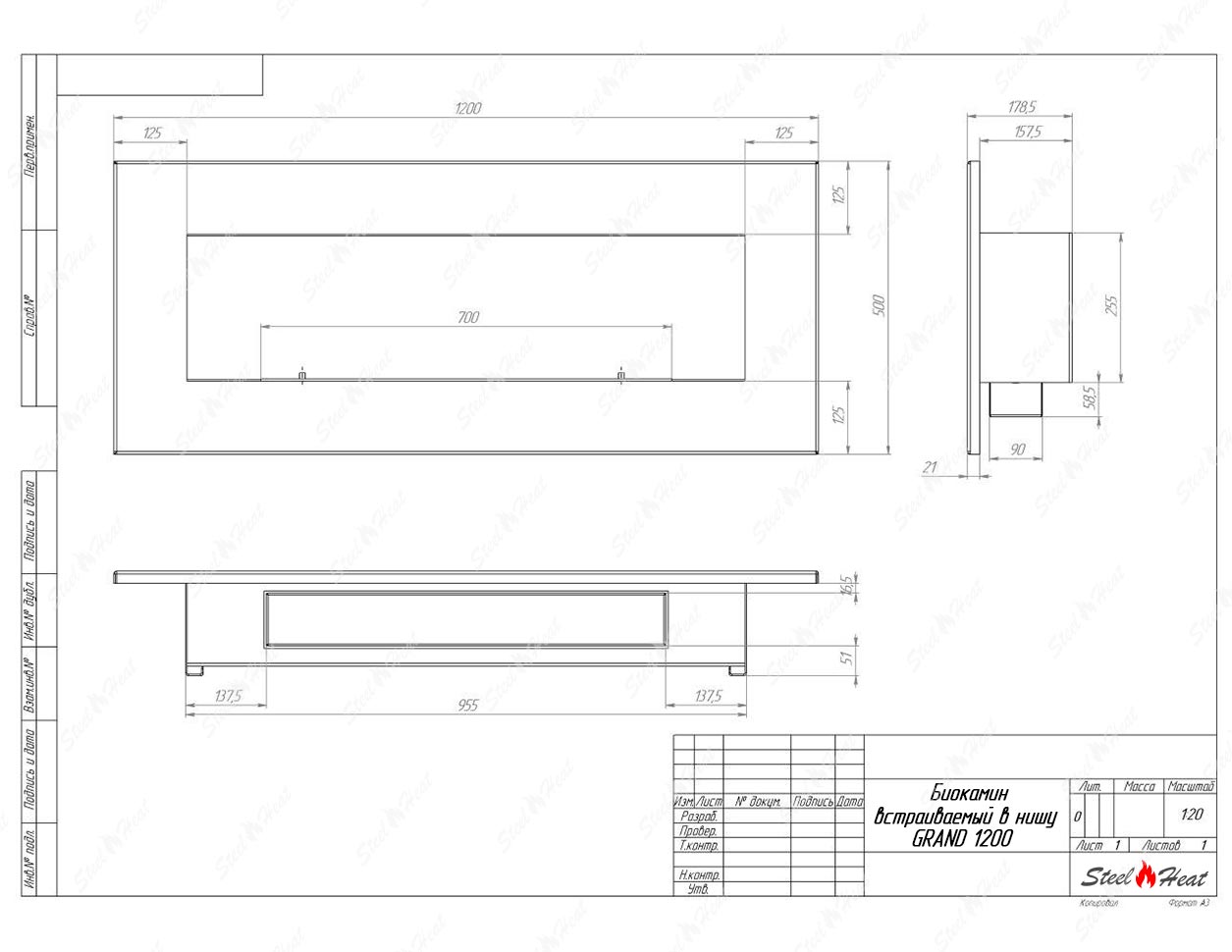 Встраиваемый Биокамин SteelHeat GRAND-H 1200 предназначен для встраивания в глухие ниши из гипсокартона, кирпича, пеноблоков, бетона.