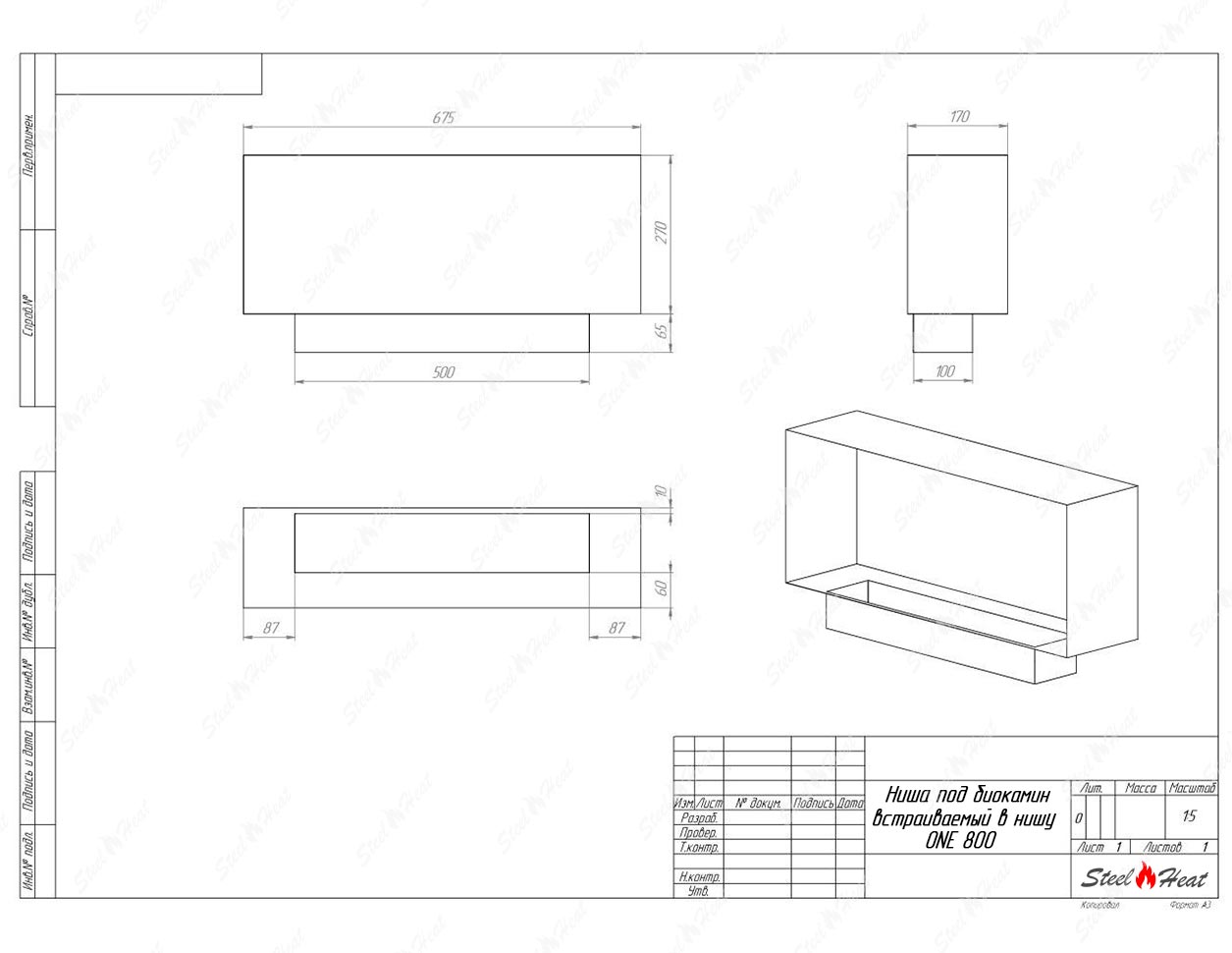 Встраиваемый Биокамин SteelHeat One 800 предназначен для встраивания в глухие ниши из гипсокартона, кирпича, пеноблоков, бетона.