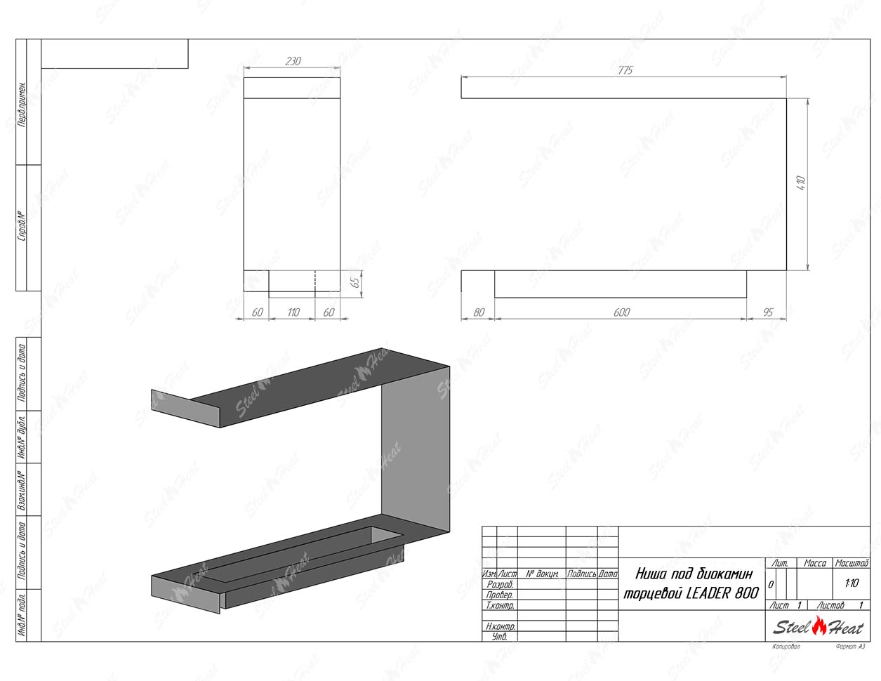 Встраиваемый Биокамин торцевой SteelHeat Leader 800 предназначен для встраивания в глухие ниши из гипсокартона, кирпича, пеноблоков, бетона.