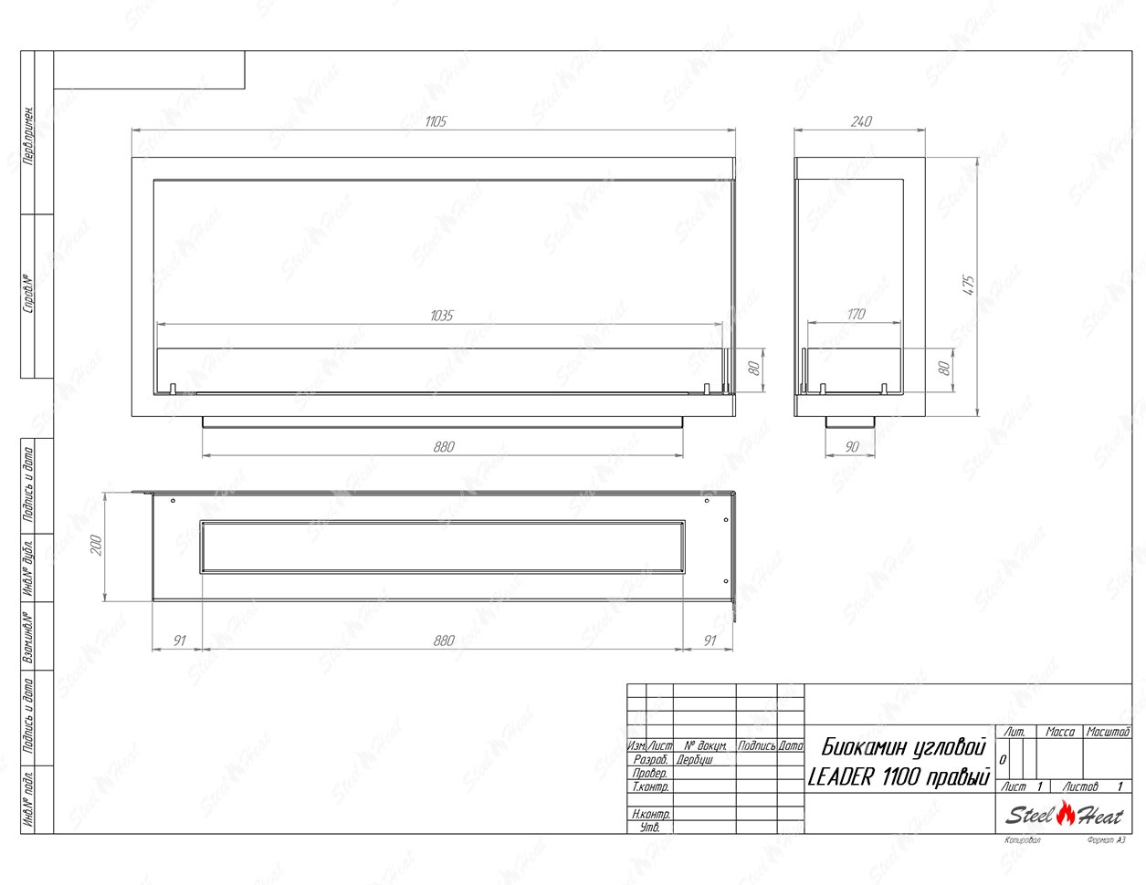 Встраиваемый Биокамин угловой SteelHeat Leader 1100 правый предназначен для встраивания в глухие ниши из гипсокартона, кирпича, пеноблоков, бетона.