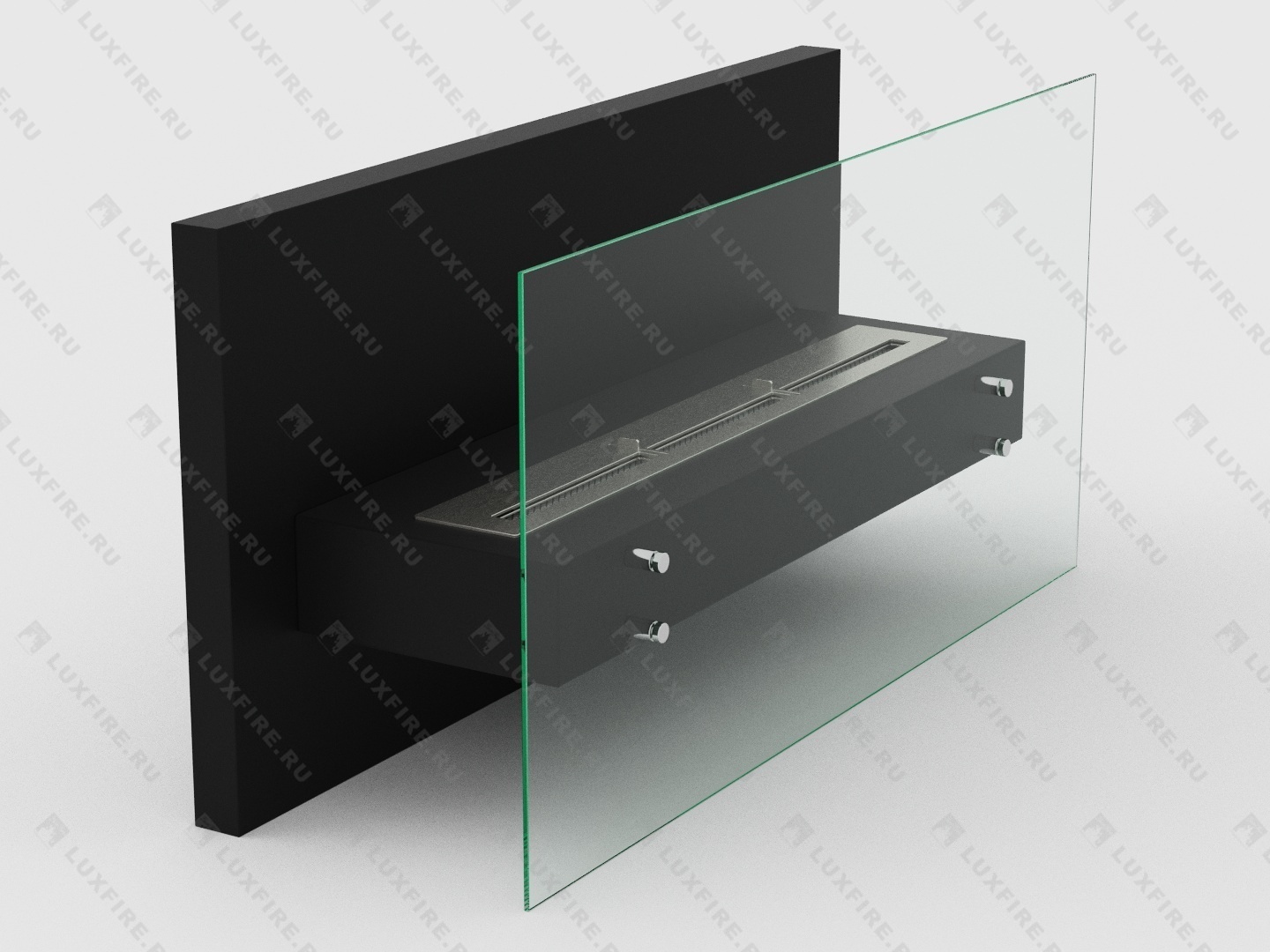 Представляет собой сборный металлический каркас с топливным блоком Lux Fire 900 М, закрепленный на 4 дистанционных держателях к защитному стеклу..
