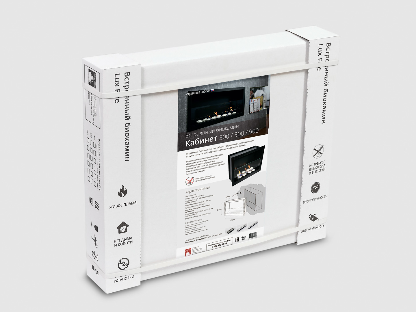 Представляет собой цельную металлическую конструкцию белого цвета класса XS, создающую полузакрытое безопасное пространство для огня с топливным блоком Lux Fire 450 XS ограниченную закаленным стеклом в котором горит живой огонь с углом обзора 180 градусов. Универсально подходит для встройки в нишу или подвеса на стену.Разработан для квартир, мы рекомендуем установку в комнаты с площадью от 20 м2. Подходит для проектирования и установки на стене.