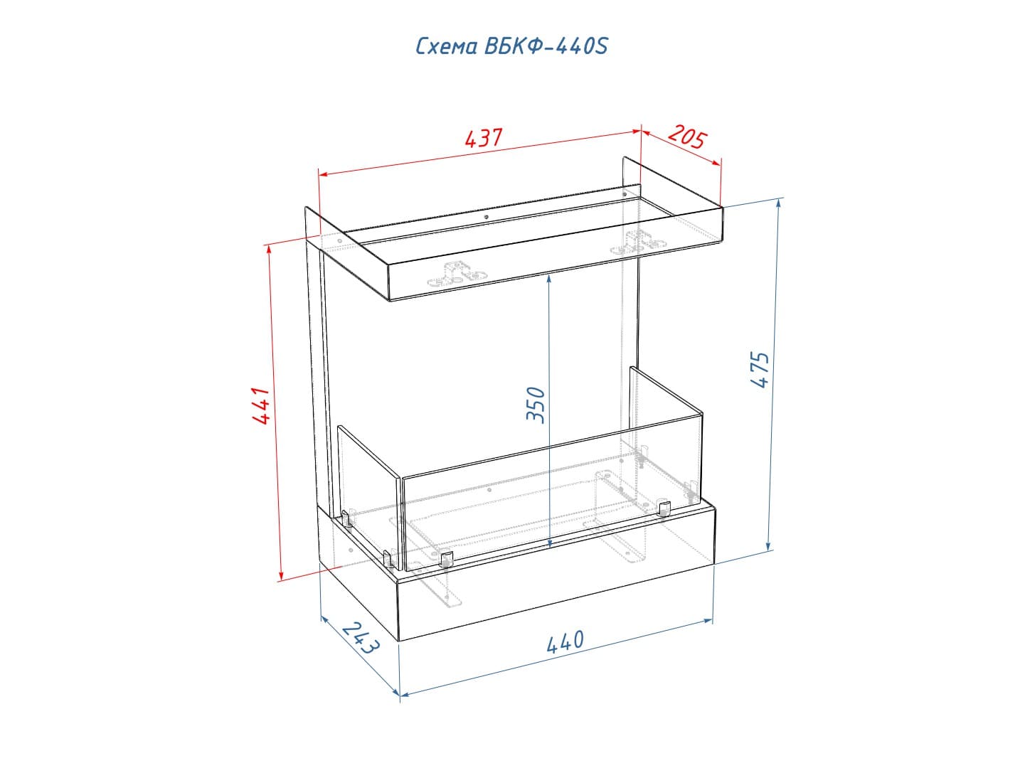 Описание торцевого биокамина Lux Fire Фронтальный 440 S