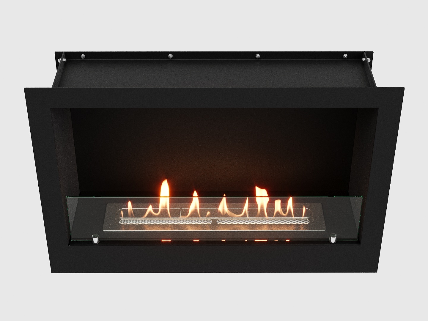 Открытый с фронтальной стороны камин на биотопливе предназначен для размещения в стены, ниши или короба.