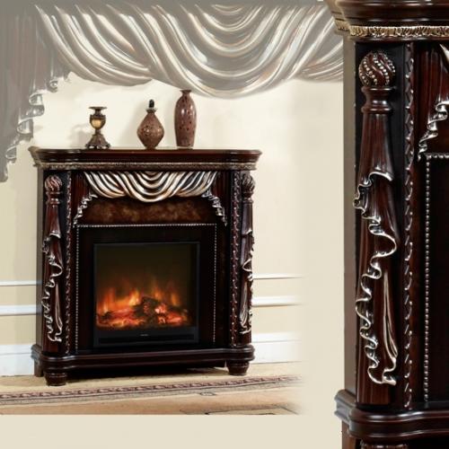Необыкновенный, очень изящный электрокамин. Цвет деревянных поверхностей - венге с серебристым патинированием.
